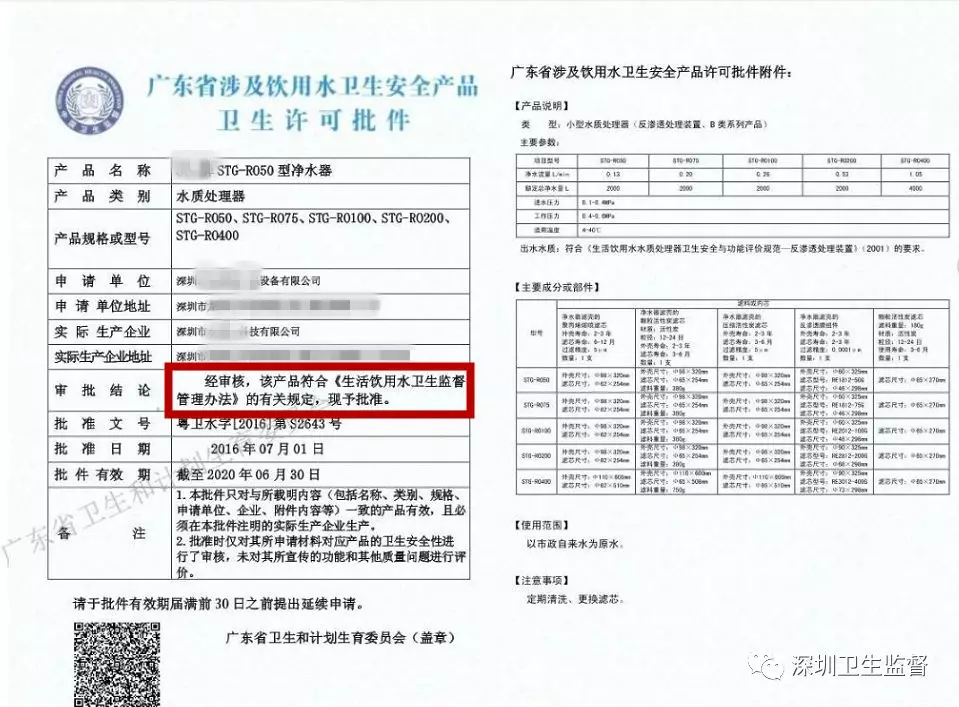 衛(wèi)生部門頒發(fā)的相同型號的《涉及飲用水衛(wèi)生安全產(chǎn)品衛(wèi)生許可批件》;