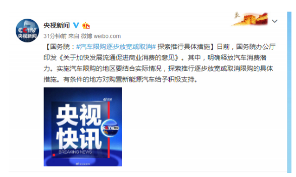 國(guó)務(wù)院說(shuō)了未來(lái)汽車限購(gòu)逐步放寬或取消但正在探索推行具體措施
