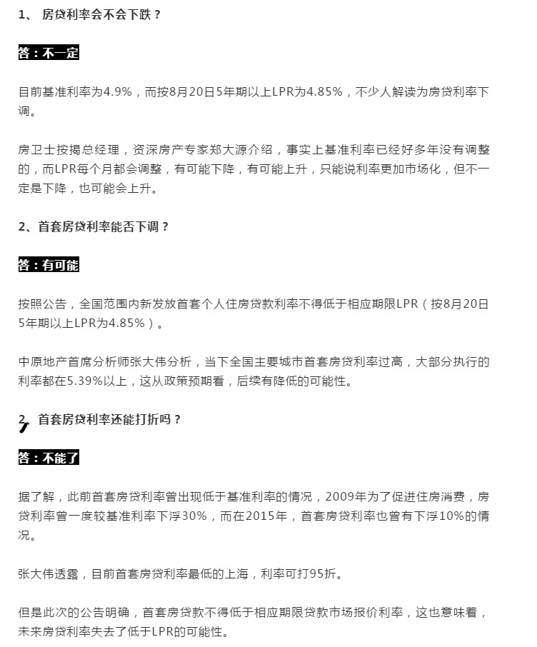 全國范圍內(nèi)新發(fā)放首套個(gè)人住房貸款利率不得低于相應(yīng)期限LPR(按8月20日5年期以上LPR計(jì)算為4.85%);