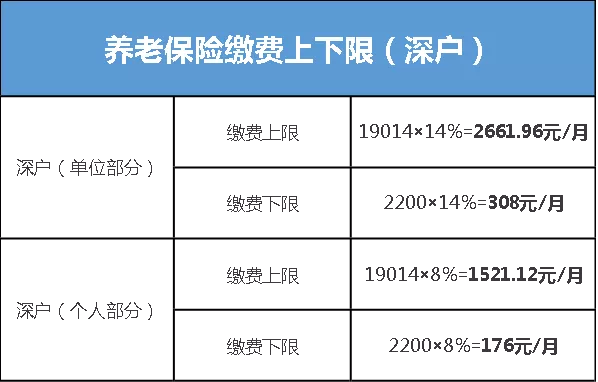 繳費(fèi)比例:深戶與非深戶職工個(gè)人繳費(fèi)比例都為8%,單位繳費(fèi)比例分別為14%(基本13%+地補(bǔ)1%)和13%(基本13%)。