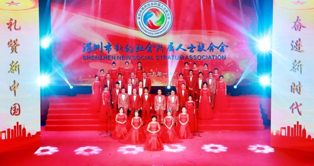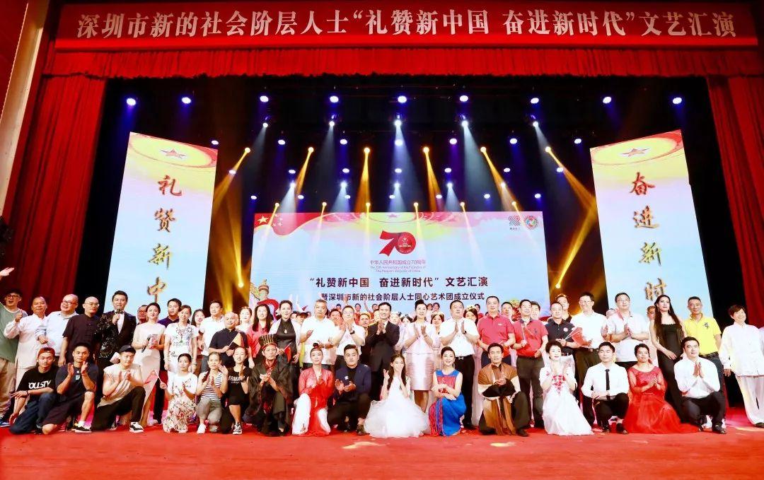 演出前,深圳市新的社會階層人士同心藝術(shù)團揭牌。本次文藝匯演是在市委統(tǒng)戰(zhàn)部指導(dǎo)下,以及各區(qū)統(tǒng)戰(zhàn)部門支持下,由市新聯(lián)會牽頭,聯(lián)合各區(qū)新聯(lián)會共同舉辦的獻禮新中國成立70周年慶?;顒又弧,F(xiàn)場氣氛喜慶溫馨,通過網(wǎng)絡(luò)直播的方式和場外新的社會階層人士和十多萬名觀眾互動。