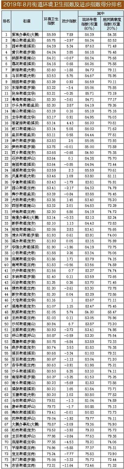 原標題:8月份深圳市環(huán)境衛(wèi)生指數(shù)測評成績發(fā)布