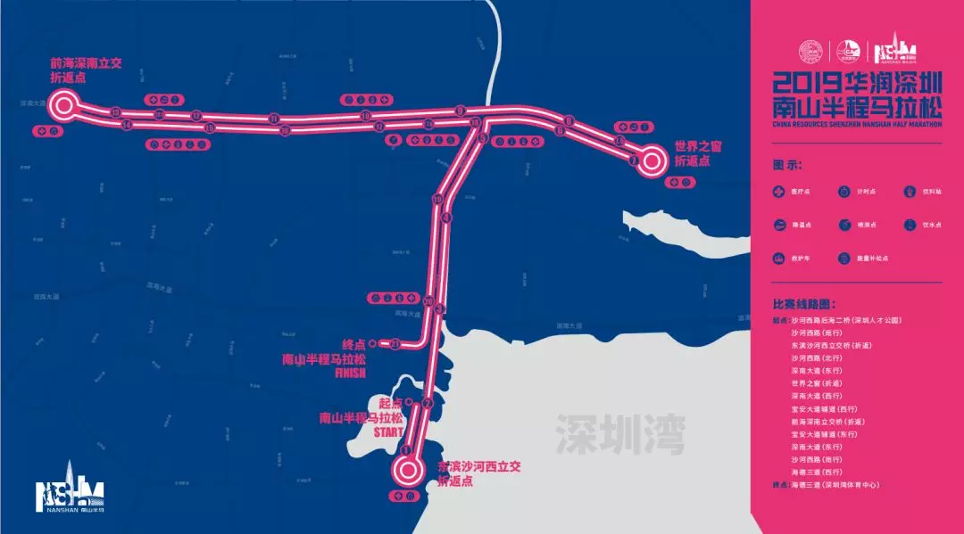 值得一提的是,今年南馬的路線較去年略有調(diào)整,賽事線路整體呈T字形,賽道起點(diǎn)在沙河西路后海二橋(深圳人才公園東門),賽道終點(diǎn)在海德三道(深圳灣體育中心),賽道主體由沙河西路和深南大道組成一縱一橫,途徑深圳灣總部經(jīng)濟(jì)片區(qū)、高新技術(shù)園、大沙河生態(tài)長廊、世界之窗、南頭古城等多個(gè)地標(biāo)性建筑,不僅彌補(bǔ)了往年沒有經(jīng)過深圳灣海域的遺憾,讓選手在賽跑之余一覽灣區(qū)海景,更向選手與觀眾充分展示南山自然人文科技之美。