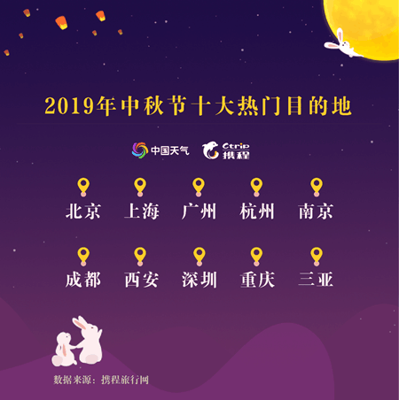 《報告》還顯示,中秋節(jié)出行高峰集中預(yù)計在放假前一天,即9月12日?!爱斕煸绯?時出行人次便已開始劇增?!睆闹饕鲂心康牡乜?,北京、上海、廣州、杭州、南京、成都、西安、深圳、重慶、三亞排名前列。另外,返程高峰將于9月15日上午7時開始。盡管今年中秋假期為周五至周日,拼假出游的需求仍然旺盛。節(jié)前請上1到2天年假,湊滿一個5天左右行程的長線游成為“拼假族”主流選擇。