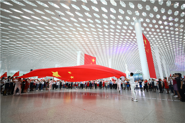 機(jī)場航站樓成“紅色海洋” 他們以這種方式慶祝新中國成立70周年