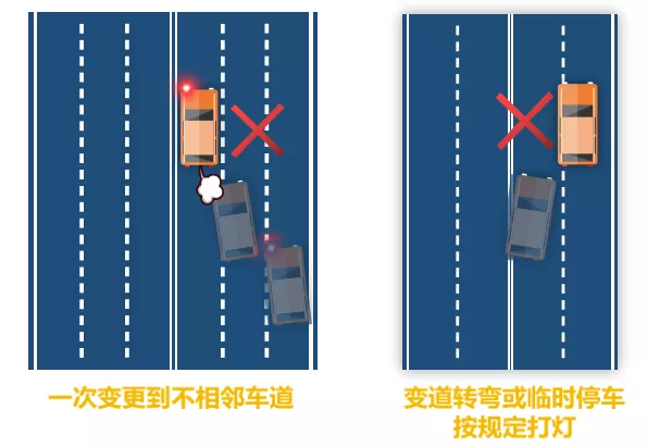 本次修訂對(duì)不按規(guī)定變道處罰500元。包括一次變更到不相鄰車道的、變道轉(zhuǎn)彎或者臨時(shí)停車不按規(guī)定打燈的,進(jìn)行處罰。