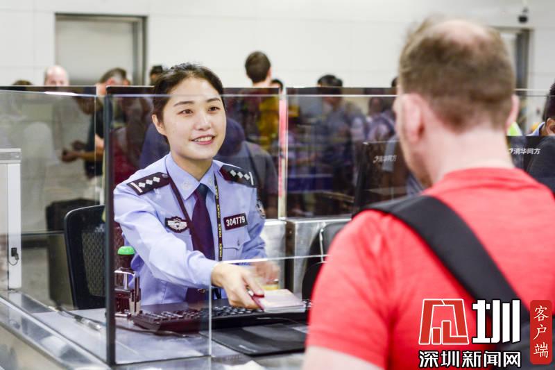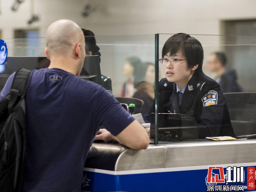 邊檢民警引導(dǎo)旅客快速通關(guān)。