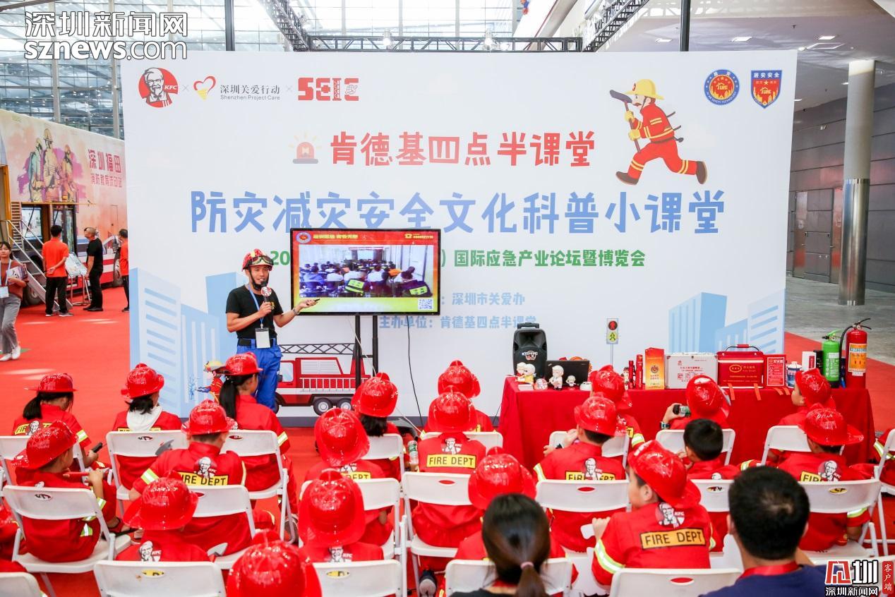 見(jiàn)圳客戶端、深圳新聞網(wǎng)2019年9月23日訊(見(jiàn)圳客戶端、深圳新聞網(wǎng)記者 陳彬)頭戴消防安全帽,手持mini滅火器,身穿靚麗正紅的消防服裝,9月21日,在深圳會(huì)展中心的深圳國(guó)際應(yīng)急博覽會(huì)上,一群可愛(ài)的小小消防員們吸引了全場(chǎng)的目光。原來(lái),這是“肯德基四點(diǎn)半防災(zāi)減災(zāi)科普小課堂”正在深圳國(guó)際應(yīng)急博覽會(huì)上舉行。30名小朋友們裝備齊全,神采奕奕地 cosplay了一把“小小消防員”。他們認(rèn)真聽消防教官的科普演講,參觀消防教育科普雙層巴士,近距離感受消防車、應(yīng)急無(wú)人機(jī)等專業(yè)的防災(zāi)救援高科技裝備的硬核魅力……獨(dú)特的消防體驗(yàn)讓同學(xué)們十分興奮。