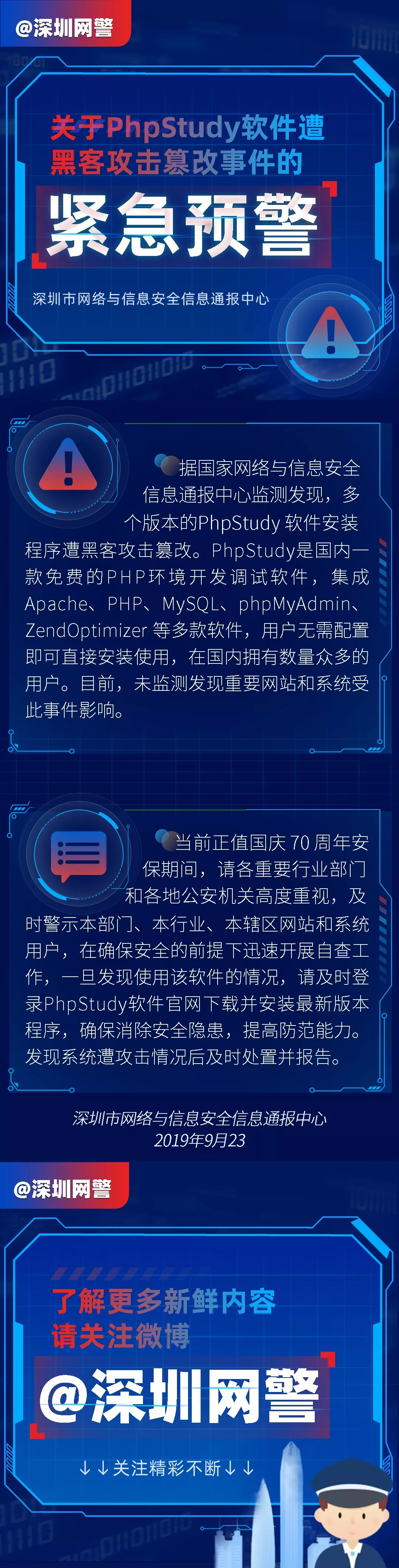 見圳客戶端·深圳新聞網(wǎng)2019年9月25日訊 據(jù)國家網(wǎng)絡(luò)與信息安全信息通報中心監(jiān)測發(fā)現(xiàn),多個版本的PhpStudy軟件安裝程序遭黑客攻擊篡改。目前,未監(jiān)測發(fā)現(xiàn)重要網(wǎng)站和系統(tǒng)受此事件影響。