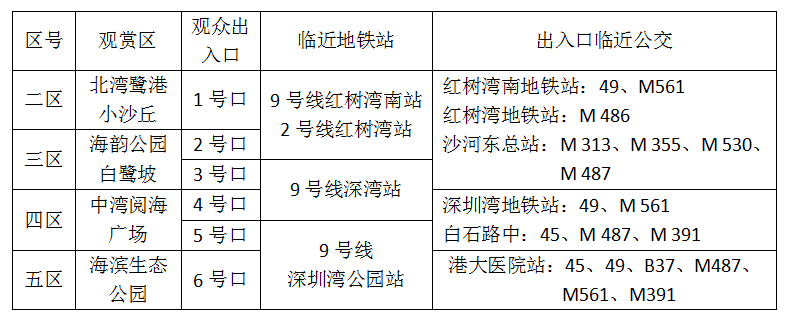 3.觀賞區(qū)域。深圳灣公園南側(cè)設(shè)二、三、四、五觀賞區(qū),具體區(qū)域見示意圖: