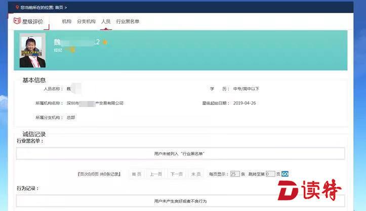 模塊中涉及到中介機(jī)構(gòu)和中介人員的星級(jí)評(píng)價(jià),來(lái)自深圳市房地產(chǎn)中介協(xié)會(huì)(以下簡(jiǎn)稱(chēng)“深房中協(xié)”)與各大中介機(jī)構(gòu)組成的專(zhuān)家委員的定期聯(lián)合評(píng)定。無(wú)論是中介人員還是中介機(jī)構(gòu),都需從一星經(jīng)數(shù)次評(píng)選提升至五星等級(jí),越高星級(jí)的人員與機(jī)構(gòu),意味著更少的投訴信息與更加優(yōu)良的誠(chéng)信記錄。目前上線的模塊中,僅有大約10%的中介人員獲得了五星認(rèn)定。