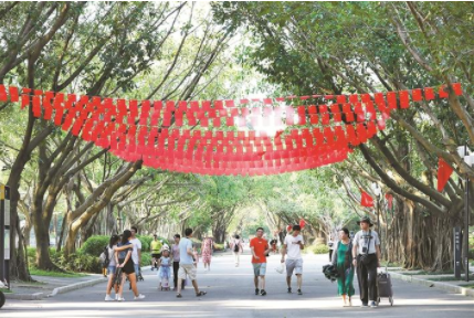 作為深圳市中心最大的生態(tài)型市政公園,蓮花山公園以其優(yōu)美的風(fēng)景、宜人的環(huán)境,被稱為人與自然和諧共存的“活的博物館”。據(jù)了解,國(guó)慶節(jié)期間,深圳市與珠三角其他8個(gè)城市一起,聯(lián)動(dòng)舉辦慶祝中華人民共和國(guó)成立70周年的群眾性嘉年華活動(dòng)。其中,深圳的市級(jí)主會(huì)場(chǎng)就設(shè)在蓮花山公園。10月2日,記者來(lái)到蓮花山公園,感受這座離市民最近的公園的節(jié)日氛圍。