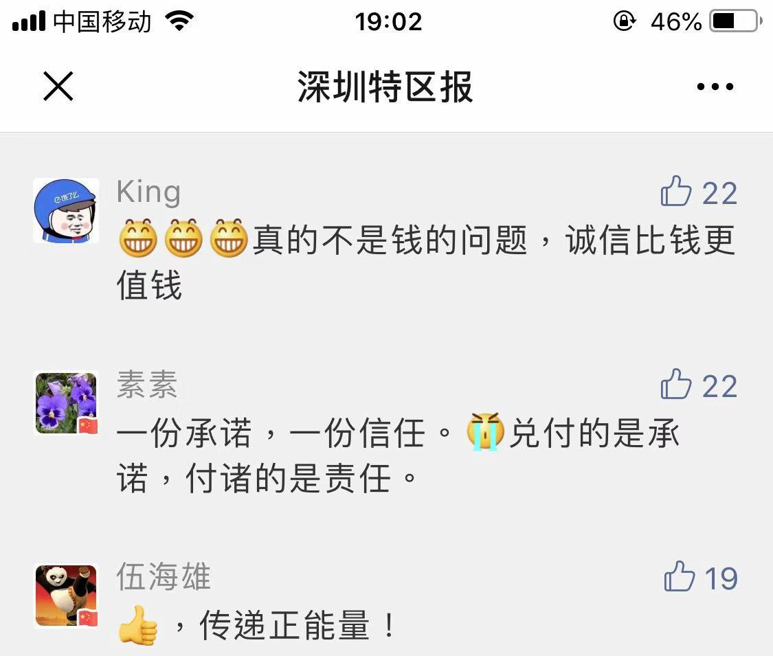 網(wǎng)友表示對雙方之間建立起來的誠信與信任感動,紛紛點贊!