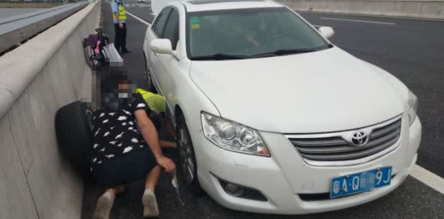 10月5日下午4點多,珠海交警郭警官開著警車在珠三角環(huán)線高速巡邏時,看到有一輛粵AQ××9J號白色豐田小車??吭趹?yīng)急車道上,打著雙閃。郭警官立即上前詢問情況,原來小車剛上高速沒多久就爆胎了,司機深知在高速停下來很危險,急得團團轉(zhuǎn),天還下起了小雨。