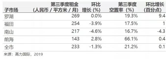 2019年第三季度,深圳甲級寫字樓市場保持較為健康和活躍的態(tài)勢,本季度內(nèi)市場凈吸納量表現(xiàn)良好,且新增供應(yīng)面積相比上一季度有所下降,空置率也穩(wěn)定在21.1%。但是,我們認(rèn)為空置率在第四季度會再次上升且持續(xù)到2020年,取決于計(jì)劃中的新增供應(yīng)完工入市情況。