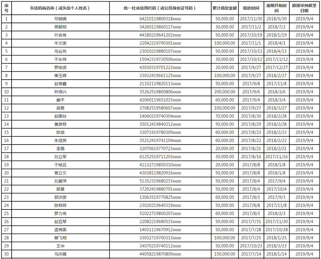 網(wǎng)絡(luò)借貸信息中介機(jī)構(gòu)失信人信息表