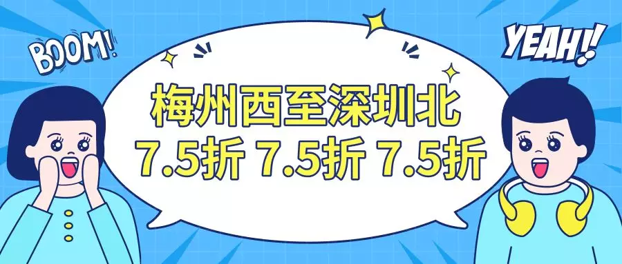 在開通運(yùn)營(yíng)初期,行經(jīng)梅汕鐵路的各趟列車,將根據(jù)不同運(yùn)行區(qū)間、運(yùn)行時(shí)間和停站情況實(shí)行,6折、7.5折、8折、8.5折、9折五種折扣票價(jià)。