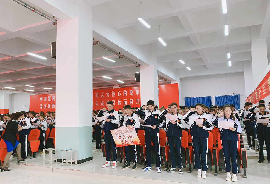會(huì)場(chǎng)上,紅旗飄揚(yáng),氣氛熱烈。出征儀式在雄壯的國(guó)歌聲中拉開(kāi)了序幕。佩戴著訂制的儀式徽章的高三各連將士整齊站立,高聲宣誓,他們用響徹云霄的錚錚誓言表達(dá)了自己堅(jiān)定奮進(jìn)的決心,用泰然自若的神情展現(xiàn)了深塔學(xué)子氣壯山河的豪氣。誓言震耳欲聾,將士信心滿(mǎn)懷。