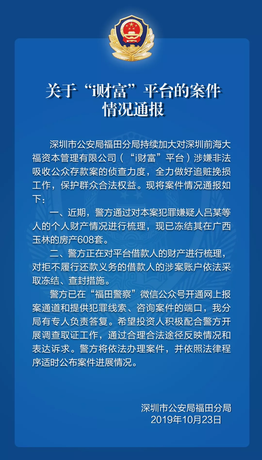 關(guān)于“i財富”平臺的案件情況通報