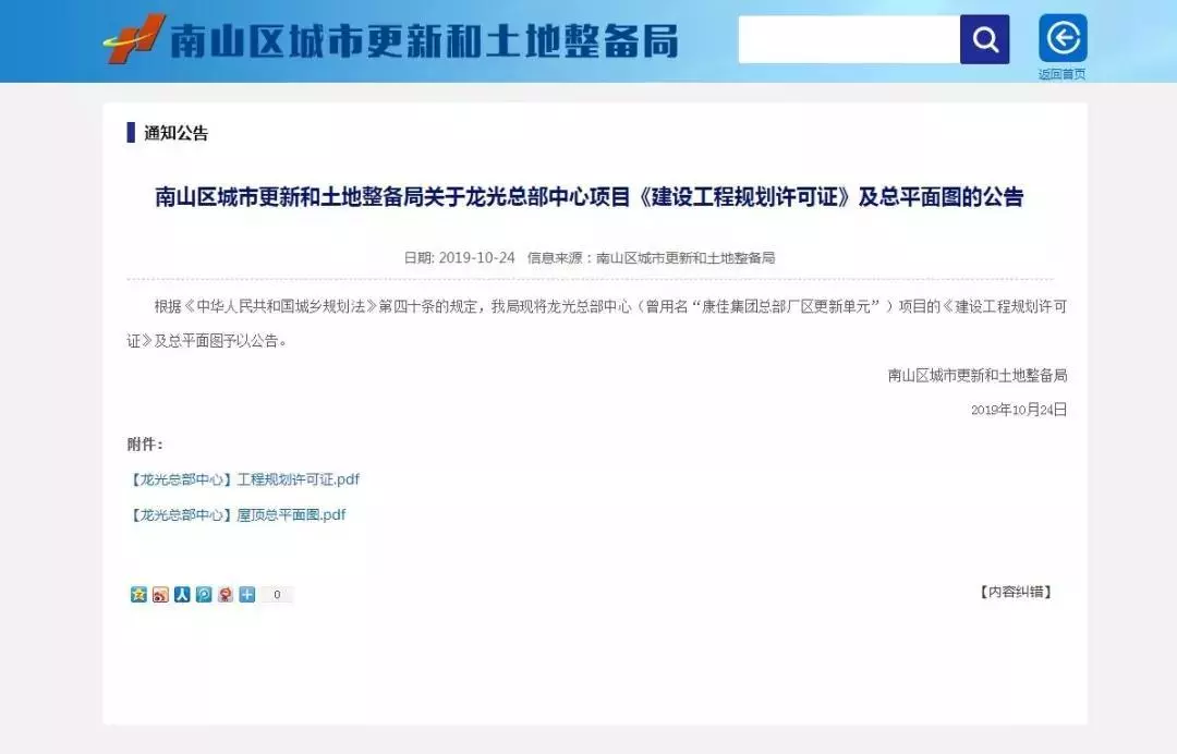 該項目近日已取得政府頒發(fā)的《深圳市建設工程規(guī)劃許可證》。10月24日,南山區(qū)城市更新和土地整備局發(fā)布的公告披露了這一信息。