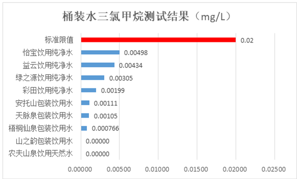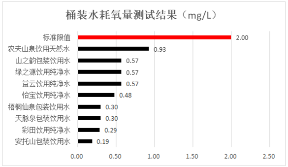 12款桶裝水污染物安全測試均符合標(biāo)準(zhǔn)要求。其中,耗氧量方面,所有飲用純凈桶裝水和其它飲用桶裝水耗氧量均符合標(biāo)準(zhǔn)要求,安托山、彩田、天脈泉和梧桐仙泉包裝飲用水受有機(jī)污染更少;所有飲用純凈桶裝水和其它飲用桶裝水三氯甲烷符合標(biāo)準(zhǔn)要求,農(nóng)夫山泉飲用天然水和山之韻包裝飲用水未檢出,表現(xiàn)更好。