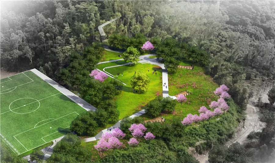 充分利用山頂?shù)匦危浴叭耍拧钡男问浇M合而成,取名為人才臺(tái)。節(jié)點(diǎn)視線佳,東望深圳北站商務(wù)區(qū),西眺長(zhǎng)嶺陂水庫(kù),是一個(gè)絕佳的休憩觀景平臺(tái)。