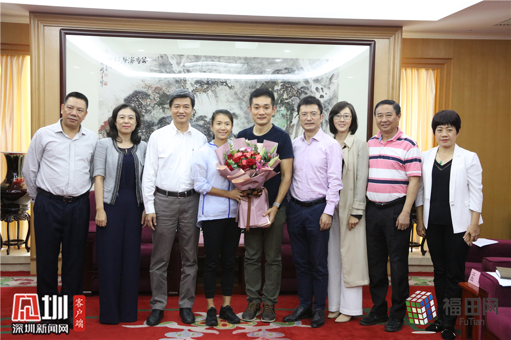 福田區(qū)區(qū)長黃偉等領(lǐng)導(dǎo)參加會(huì)見,會(huì)上給劉虹頒發(fā)了50萬元獎(jiǎng)勵(lì)金,以表彰她頑強(qiáng)拼搏的精神和對(duì)福田體育事業(yè)做出的貢獻(xiàn)。
