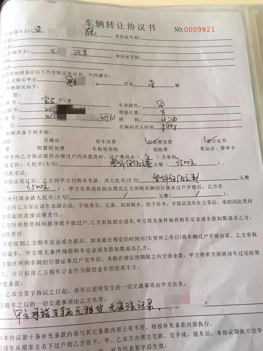 (現場發(fā)現的車輛轉讓協(xié)議書)