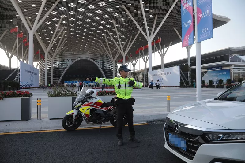 11月4日,深圳交警在會展中心各個重要路口與點位設置百余名警力進行保障工作,展會首日共查處違停35宗、勸離40宗,共查扣違法電動三輪車2臺、電動自行車7臺。
