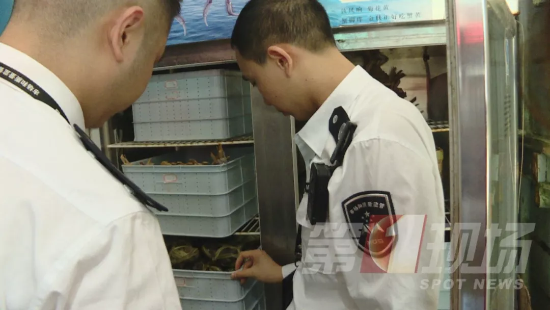 執(zhí)法人員突擊檢查了羅芳水產(chǎn)批發(fā)市場(chǎng)內(nèi)幾間售賣膏蟹的商鋪,并沒(méi)有在店內(nèi)發(fā)現(xiàn)粗紅繩的蹤影,所有膏蟹以及大閘蟹所捆綁的繩子都是符合規(guī)格的,沒(méi)有吸水和壓秤的現(xiàn)象。