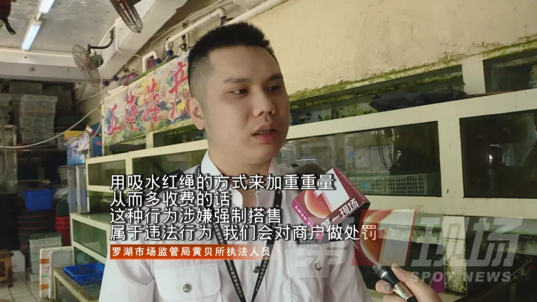 羅芳水產(chǎn)批發(fā)市場(chǎng)商家承認(rèn),的確有一些進(jìn)貨商為了盈利,會(huì)要求他們幫忙把紅繩綁上去,或者自己將紅繩加上去的情況,那這一行為是否合規(guī)?記者聯(lián)系了轄區(qū)市場(chǎng)監(jiān)督管理局的執(zhí)法人員到現(xiàn)場(chǎng)。