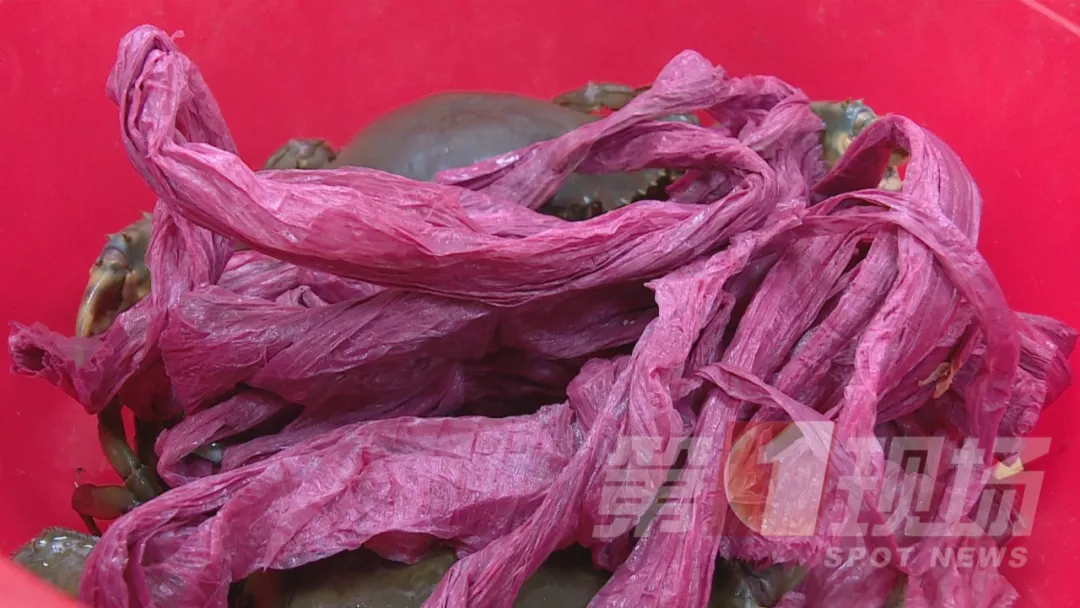 記者走訪另一家店鋪,同樣沒(méi)有發(fā)現(xiàn)綁粗紅繩的膏蟹。店家表示,水產(chǎn)市場(chǎng)里賣的膏蟹,是一筐筐從臺(tái)州運(yùn)來(lái)直接批發(fā)售賣,運(yùn)來(lái)時(shí)綁的都是白色塑料繩。