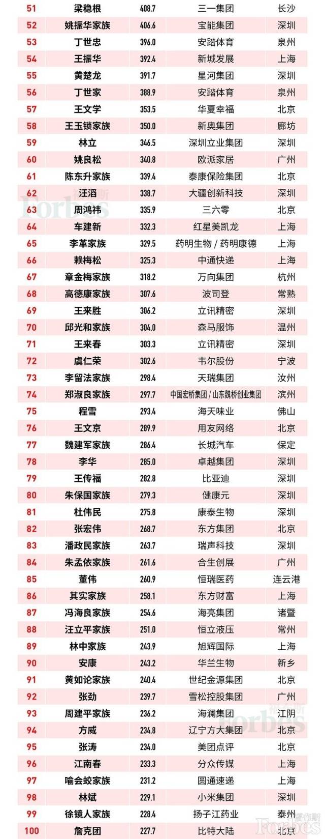 福布斯中國(guó)富豪TOP150