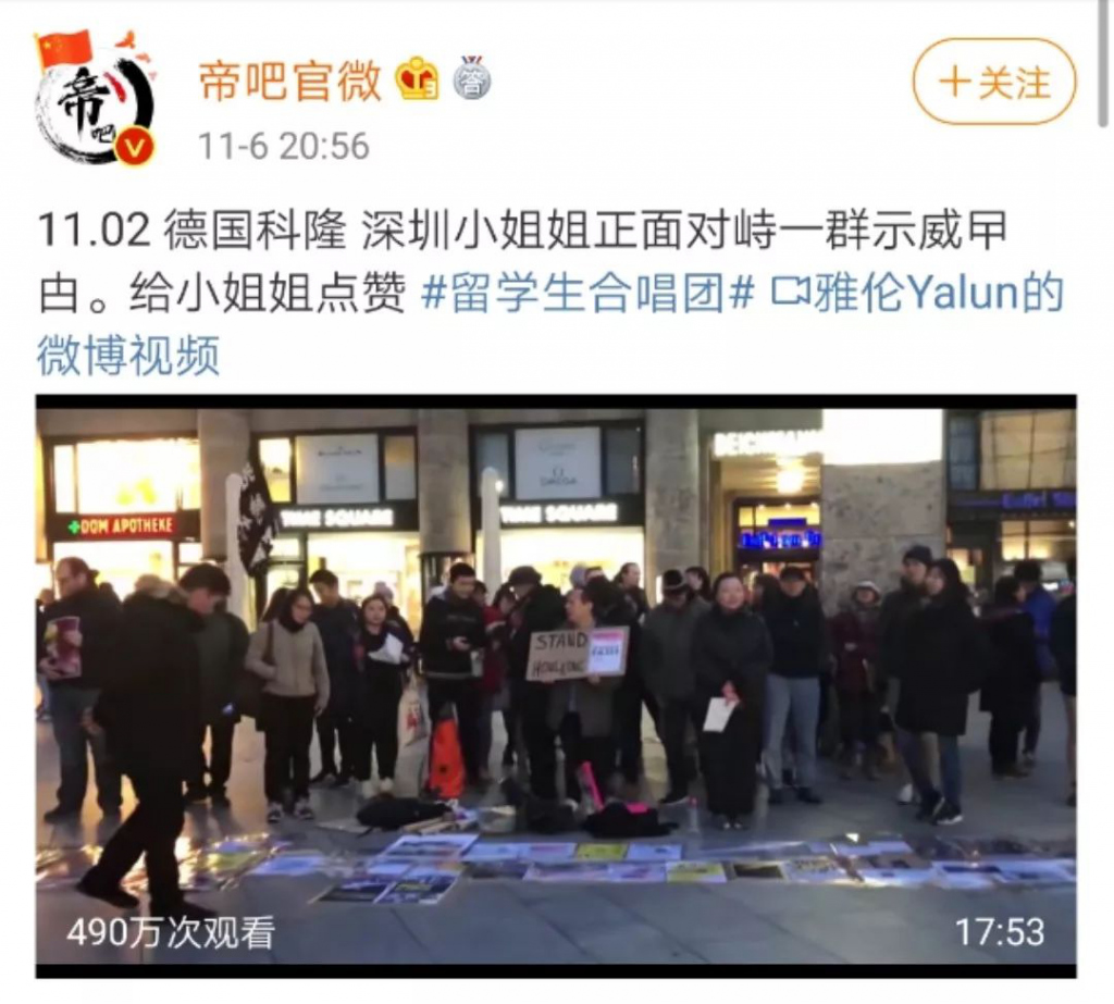 深圳晚報2019年11月8日訊 11月2日晚,在德國科隆街頭,一位來自中國內(nèi)地的女孩,用中、英、德三種語言霸氣對峙香港示威者。她思維清晰、證據(jù)充足、擲地有聲。面對姑娘的質(zhì)問,示威者們或以喊口號、唱歌無禮應(yīng)對;或顧左右而言他。這位女孩也因為視頻在網(wǎng)上的迅速傳播而引發(fā)海量關(guān)注。(此前報道:解氣!深圳女孩回懟香港示威者,4種語言切換表現(xiàn)666)