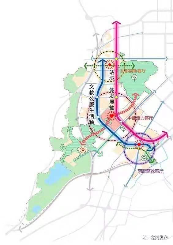 2019年7月,備受矚目的大運新城城市設(shè)計成果經(jīng)深圳市規(guī)劃和自然資源局審議正式出爐。未來的大運新城將是一座生態(tài)文明健康、學(xué)習(xí)文化濃厚、多維開放連接、創(chuàng)新活力迸發(fā)的高水平城市新客廳,形成“一主兩副、三心兩軸”的總體城市框架。其中“三心”為“一主兩副”三個城市客廳,即主客廳“中部活力客廳”,副客廳“北部創(chuàng)新客廳”和“南部高效客廳”?!皟奢S”為黃閣路“站城一體發(fā)展軸”和龍飛大道“文教公服生活軸”。