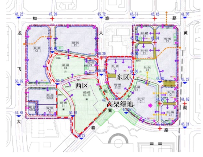 設(shè)計將考慮公配及綠地地塊東區(qū)(含01-09、01-10地塊)與商業(yè)為鄰,以“文化”為前提,通過功能模塊相互并聯(lián),體現(xiàn)公共文化性。公配及綠地地塊西區(qū)(含02-01、02-02、02-03、02-09地塊)與公寓、大運場館為鄰,以“休閑”為前提,結(jié)合公共空間的營造,打造低密度綠色景觀開放空間,體現(xiàn)休閑生活性。高架綠地為連接?xùn)|西區(qū)、商業(yè)、超塔及大運體育場館的重要慢行樞紐,需注重流線的合理性及公共開放空間與建筑的有機結(jié)合。