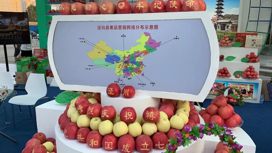 涇川縣的展位,展示了該縣果品營銷網(wǎng)絡分布示意圖。