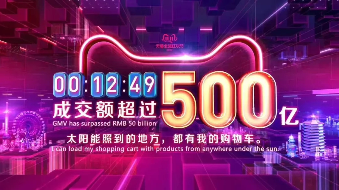 截至11日12分49秒,天貓雙十一銷售額突破500億元!