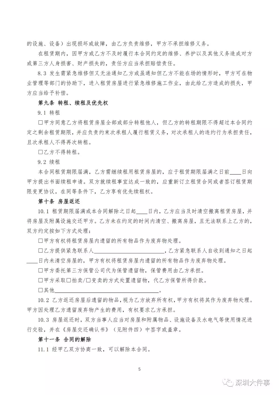 (深圳市房屋租賃住宅合同模板)