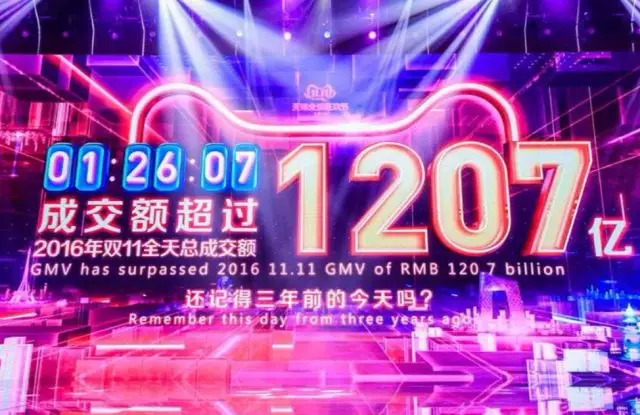 南方日報2019年11月11日訊 11月11日剛過1小時26分07秒,天貓雙11實時成交額達1207億元,超越2016年全天。去年,天貓雙11成交額抵達1207億用時8小時8分52秒,這也意味著,今年成交破1207億速度比去年快了近7小時。