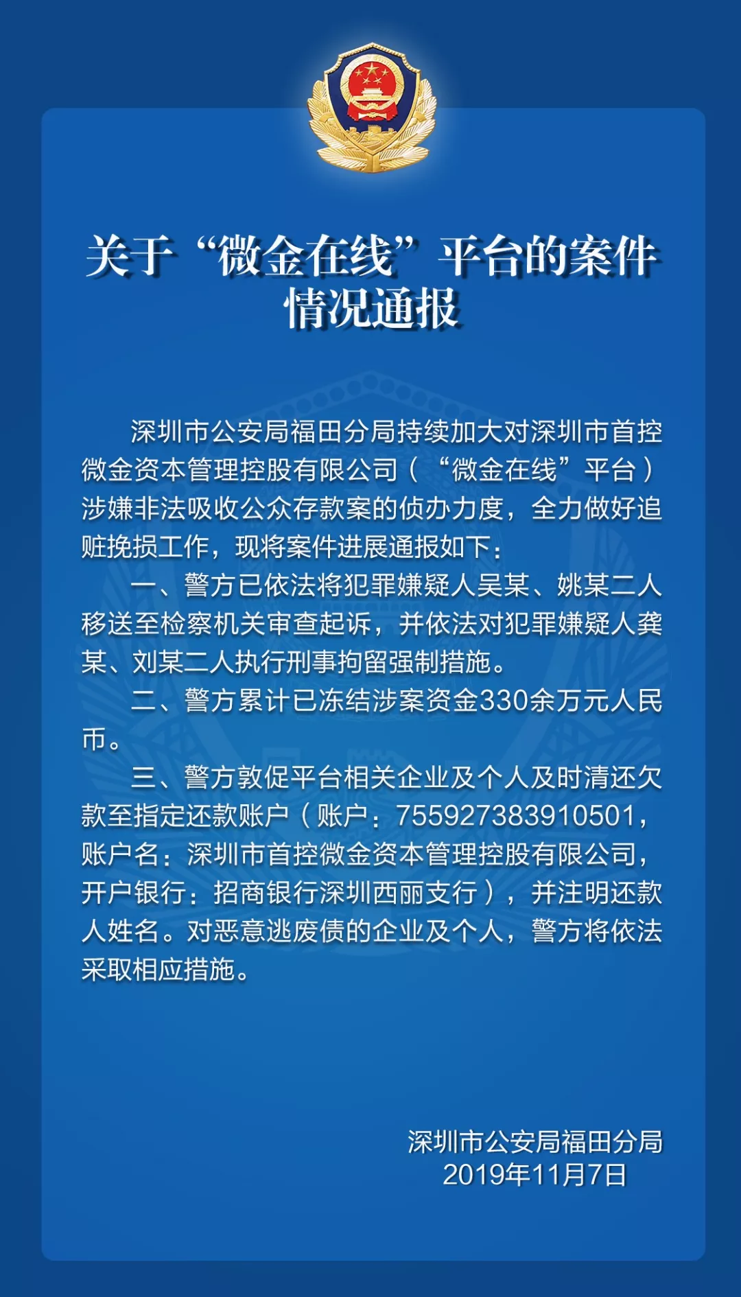 關(guān)于“微金在線”平臺的案件情況通報(bào)