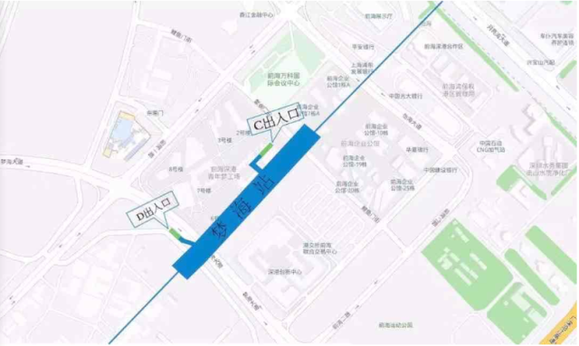 夢海站位于前海深港現(xiàn)代服務業(yè)合作區(qū)夢海大道(原振海路)與規(guī)劃支路交叉口下方,出入口共計2個,C出入口位于鯉魚門九街北側,靠近青年夢工廠,D出入口位于夢海大道西側