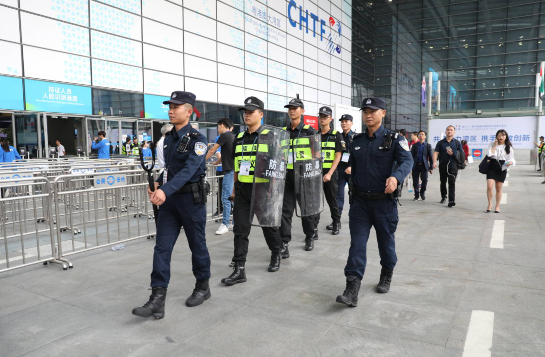 保安人員正在高交會現(xiàn)場執(zhí)勤。(深圳公安提供)