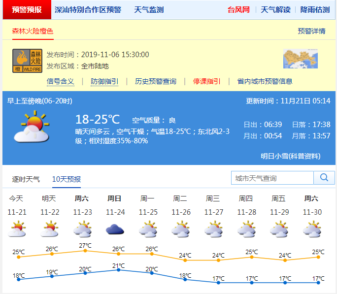 見(jiàn)圳客戶端·深圳新聞網(wǎng)2019年11月21日訊 19日深圳已成功入秋了,但冷空氣走后,氣溫還是出現(xiàn)了回升,21日氣溫將在18-25℃。