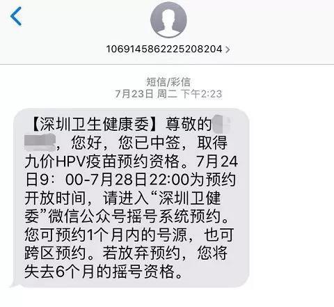11月26日上午10:00搖號結(jié)束后,當(dāng)天下午,申請者就可以在“深圳衛(wèi)健委”的搖號頁面查看自己是否中簽。同時,中簽者也會收到深圳衛(wèi)健委的短信提示。