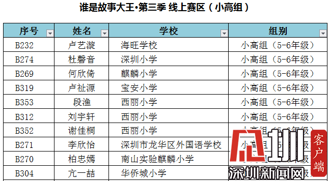 附:“誰是故事大王·第三季”-線上賽區(qū)晉級深圳市復(fù)賽名單