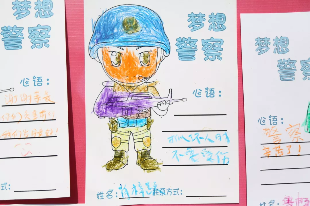 每一年,可愛的孩子們都會(huì)在這里畫出他們心目中的警察,留下暖心的話,許下“警察夢”。