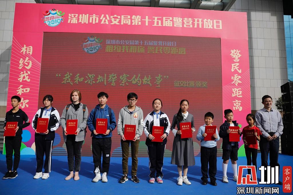 獲得“我和深圳警察的故事”征文比賽其他獎項的小朋友們上臺領獎。