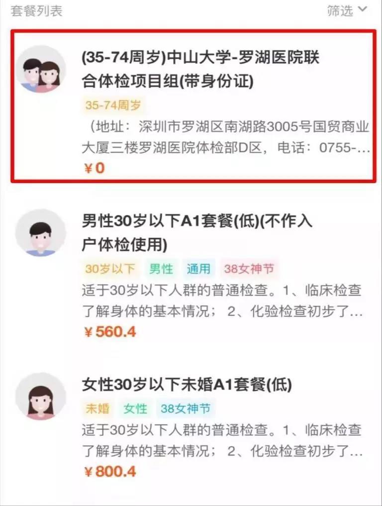 選擇“中山大學(xué)-羅湖醫(yī)院聯(lián)合體檢項目組”↓