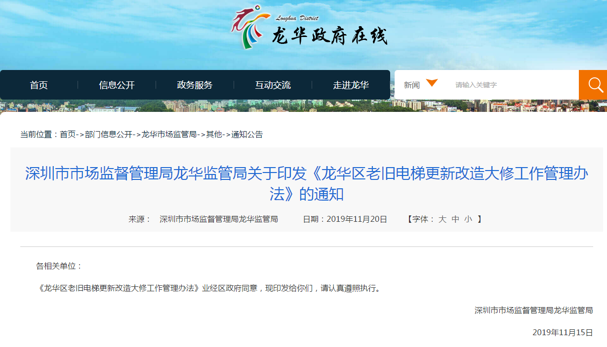 老舊電梯更新每臺(tái)補(bǔ)貼最高20萬(wàn)!符合條件的單位可向深圳市市場(chǎng)監(jiān)督管理局龍華監(jiān)管局聯(lián)系報(bào)名,報(bào)名截止時(shí)間為:2019年12月13日。